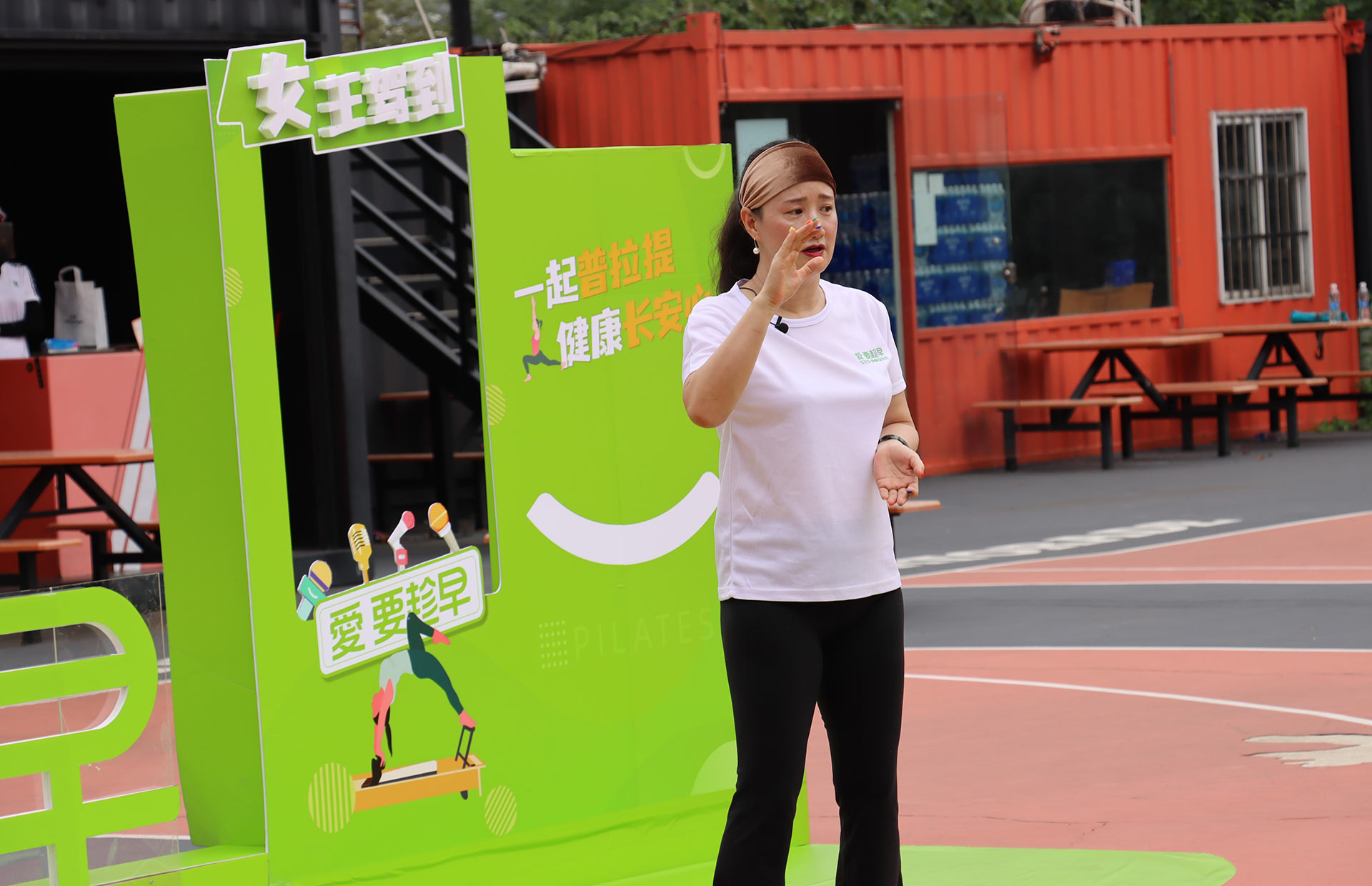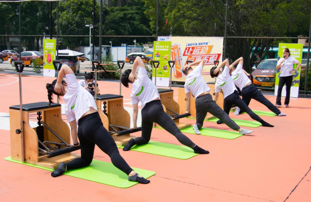 在現(xiàn)場(chǎng),馬老師詳細(xì)演示、講解了“腸道普拉提”動(dòng)作,并帶領(lǐng)30多位普拉提愛好者一起展示。