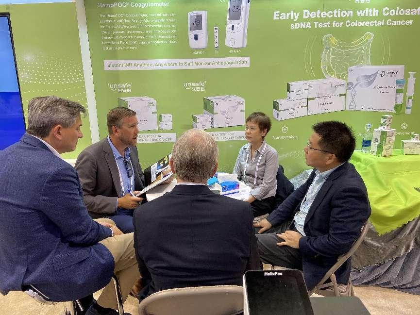 其中,長安心®糞便基因腸癌檢測(cè)、久安心®膀胱癌基因檢測(cè)和會(huì)安心®肺癌基因檢測(cè)等產(chǎn)品,以其精準(zhǔn)、便捷、無創(chuàng)等優(yōu)勢(shì),成為與會(huì)專業(yè)人士關(guān)注的焦點(diǎn)。同時(shí)也展示了康立明全資子公司好芝生物產(chǎn)品HelixPOC®全自動(dòng)微流控?zé)晒釶CR一體機(jī)、HemoPOC®凝血檢測(cè)系統(tǒng),綜合展示了公司的創(chuàng)新領(lǐng)先技術(shù)。這些對(duì)于腫瘤的早期篩查、個(gè)性化治療以及疾病管理具有重要意義。