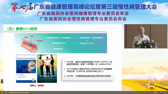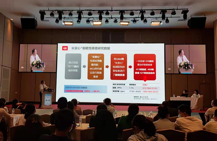 廣東省人民醫(yī)院協(xié)和醫(yī)療中心主任、廣東省醫(yī)院協(xié)會(huì)醫(yī)院健康管理專委會(huì)主任委員陳煉以《中國(guó)癌癥早篩的機(jī)遇與挑戰(zhàn)》為題作主題演講時(shí),重點(diǎn)介紹了糞便SDC2基因甲基化PCR檢測(cè)對(duì)結(jié)直腸癌早期診斷的效果。