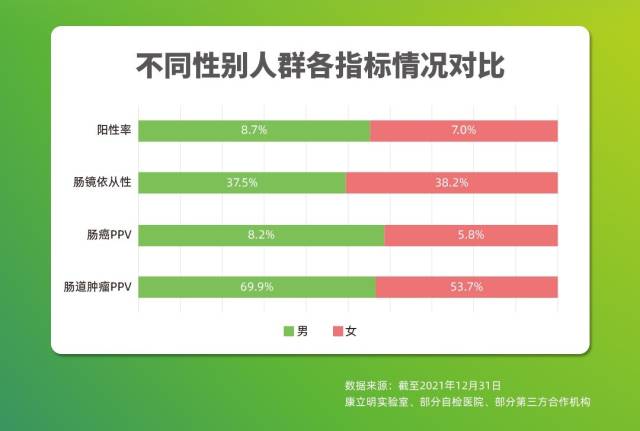 糞便DNA檢測技術(shù),正成為腸癌篩查中的重要一環(huán)??盗⒚魃锸紫袌龉汆嚂郧侔l(fā)布的腸癌糞便基因檢測產(chǎn)品“長安心”最新前瞻性應(yīng)用數(shù)據(jù)顯示,截至2021年12月,長安心共完成33萬例前瞻性篩查,其中175528例篩查數(shù)據(jù)可追溯,12114例受檢者檢測結(jié)果陽性(陽性率6.9%),其中4970例檢測結(jié)果陽性的受檢者進行了腸鏡復(fù)查(腸鏡依從性41.0%),一共發(fā)現(xiàn)3408例需要治療的受檢者,其中755例腸癌,1444例腺瘤,1209例息肉。“長安心”對腸道腫瘤的陽性預(yù)測值(PPV)為68.6%(其中腸癌的陽性預(yù)測值為15.2%),來自國家科技部項目的數(shù)據(jù)顯示,長安心的陰性預(yù)測值達99.9%。